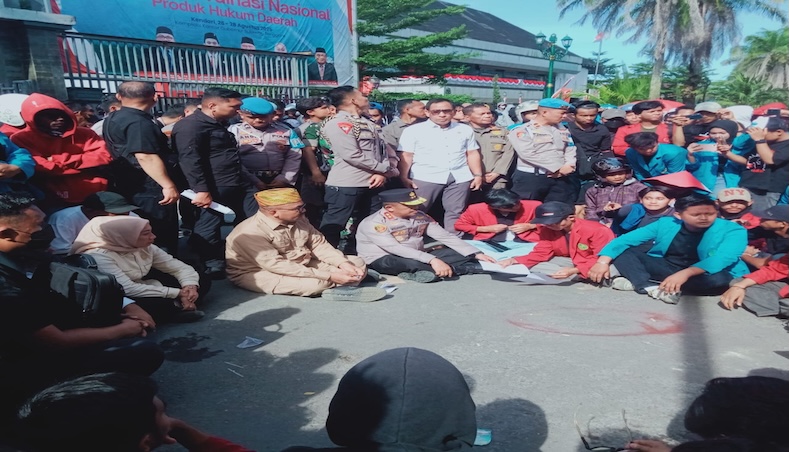 Massa ditemui oleh Ketua DPRD Sultra, La Ode Tariala, Kapolda Sultra, Irjen Pol Didik Agung Widjanarko dan Danrem 143 Halu Oleo, Brigjen TNI Raden Wahyu Sugiarto. Ketua DPRD Sultra tersebut kemudian menandatangani tuntutan-tuntutan Mahasiswa tersebut.