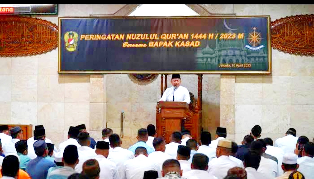 TOPIKSULTRA.COM, JAKARTA – Kepala Staf Angkatan Darat (Kasad) Jenderal TNI Dr. Dudung Abdurachman menghadiri peringatan Nuzulul Qur’an 1444 H/2023 M sekaligus memberikan Ceramah Hikmah Nuzulul Quran dan menjadi imam shalat Tarawih.