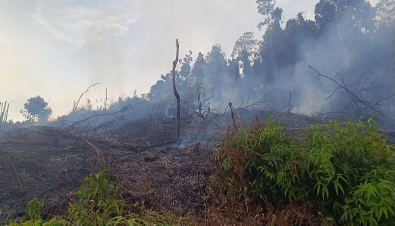Kebakaran menghanguskan lahan perkebunan seluas kurang lebih satu hektare yang ditanami merica dan cengkeh. Sebagian tanaman merica yang terbakar diketahui masih dalam kondisi baru ditanam.