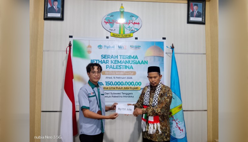TOPIKSULTRA.COM, KENDARI —- Solidaritas untuk Palestina bukan tren sesaat bagi Muslimah Wahdah Sulawesi Tenggara, menjelang Ramadhan ini mereka kembali menyerahkan Donasi sebesar Rp. 150 juta melalui Laznaz Wahdah Inspirasi Zakat (WIZ), Ahad (15/02/2026)