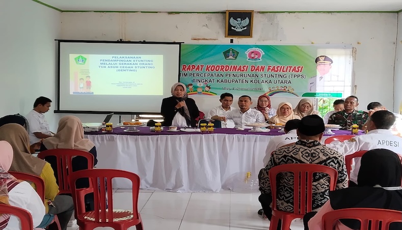 TOPIKSULTRA.COM, KOLAKA UTARA — Pemerintah Kabupaten Kolaka Utara kembali memperkuat komitmen dalam percepatan penurunan stunting melalui Rapat Koordinasi dan Fasilitasi Tim Percepatan Penurunan Stunting (TPPS) Kabupaten Kolaka Utara yang digelar di Aula Kantor Camat Tiwu, Rabu (19/11/2025).