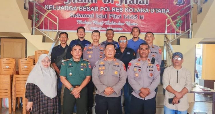 TOPIKSULTRA.COM, KOLAKA UTARA – Polres Kolaka Utara (Kolut) menggelar acara halal bi halal Idul Fitri 1445 H bersama jajaran TNI dan Brimob Batalyon C Pelopor, di Aula Mapolres pada.Senin (22/4/2024).