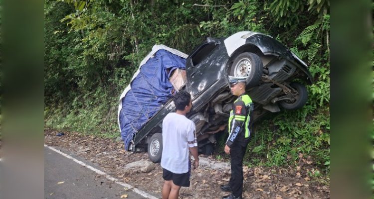 Gagal Menanjak di Tikungan Letter S, Pick Up Tabrak Tebing