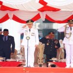 TOPIKSULTRA.COM, KENDARI — Gubernur Sulawesi Tenggara, Mayjen TNI (Purn) Andi Sumangerukka, memimpin upacara peringatan Hari Bhayangkara ke-79 yang berlangsung khidmat di tengah gerimis di Lapangan Apel Kantor Gubernur Sultra, Selasa