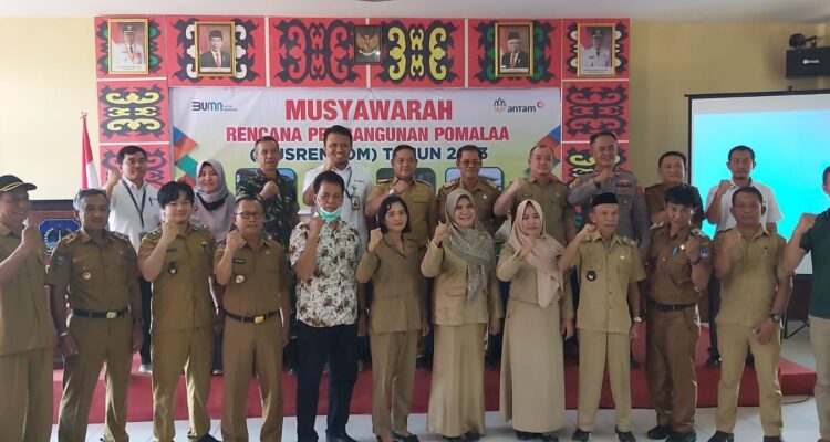 TOPIKSULTRA.COM, KOLAKA — PT ANTAM Tbk UBPN Kolaka menggelar Musyawarah Rencana Pembangunan Pomalaa (Musrempom) yang dihadiri Forkopicam Pomalaa, Kabupaten Kolaka, Selasa (9/5/2023). General Manager PT ANTAM Tbk UBPN Kolaka, Nilus